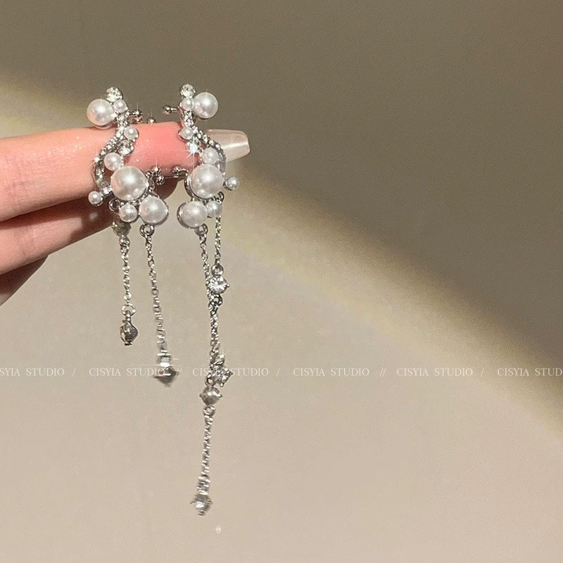 أساور أذن نسائية طويلة متعددة الاستخدامات مرصعة باللؤلؤ