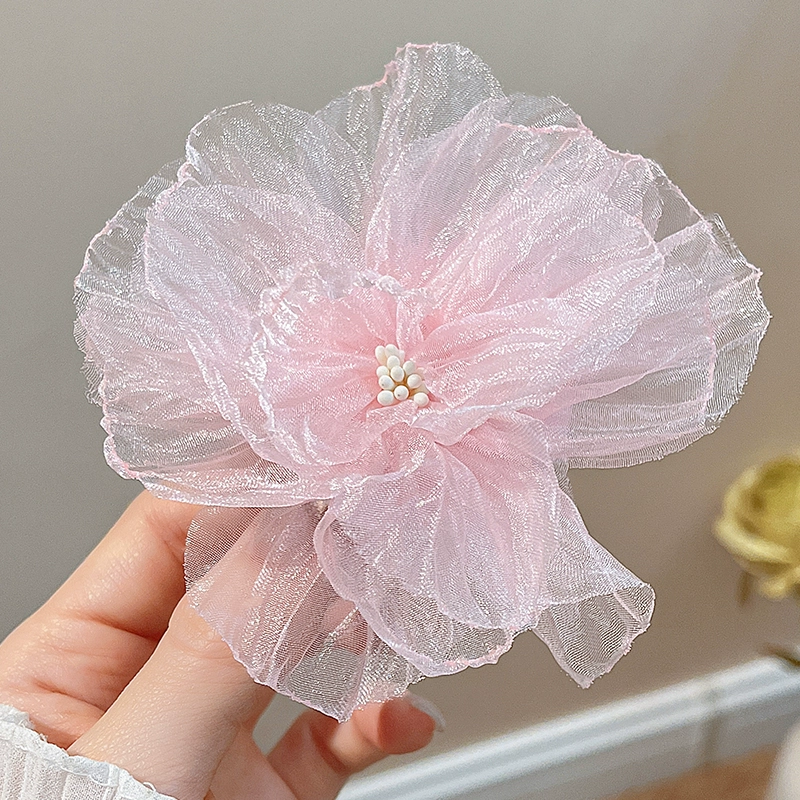 دبوس شعر على شكل زهرة الأورجانزا البيضاء، مشبك جانبي على شكل منقار البط، إكسسوارات شعر شبكية راقية للسيدات لقضاء العطلات على شاطئ البحر، غطاء رأس