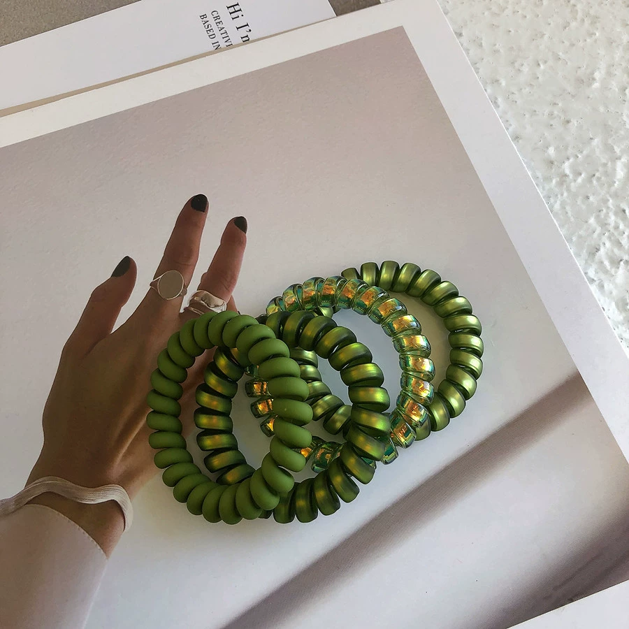 4 قطع من حبل الشعر المطاطي ذو اللون الأخضر الزيتوني