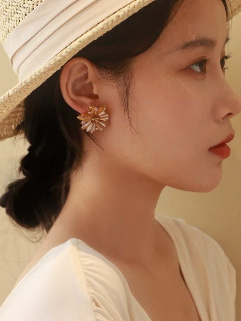 هوا شي لياو مشبك للأذن بتصميم كبير من الكريستال ديزي