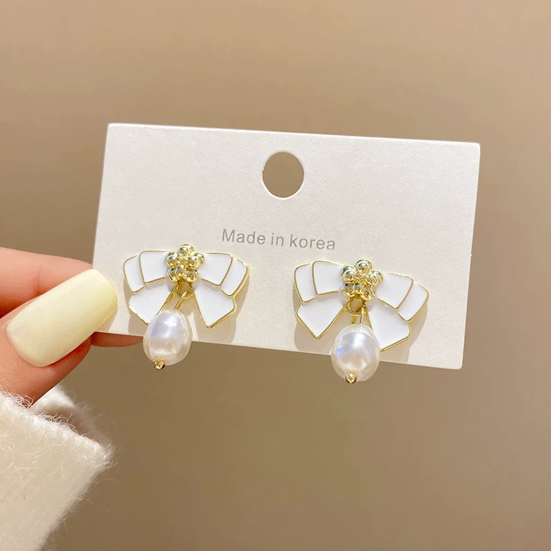 الزهور الملونة لطيف الإناث المشاهير الإنترنت أقراط اللؤلؤ ورقة