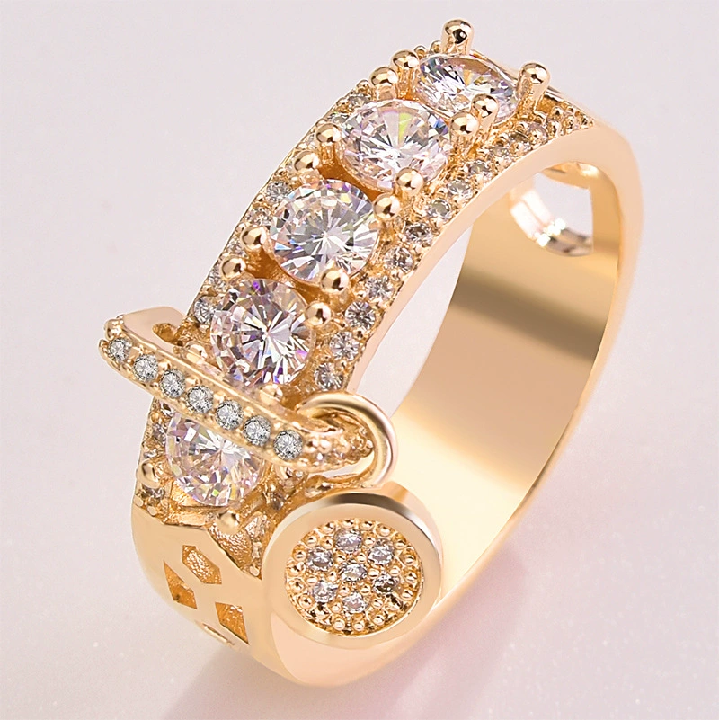 خاتم من التيتانيوم الصلب باللون الذهبي للنساء