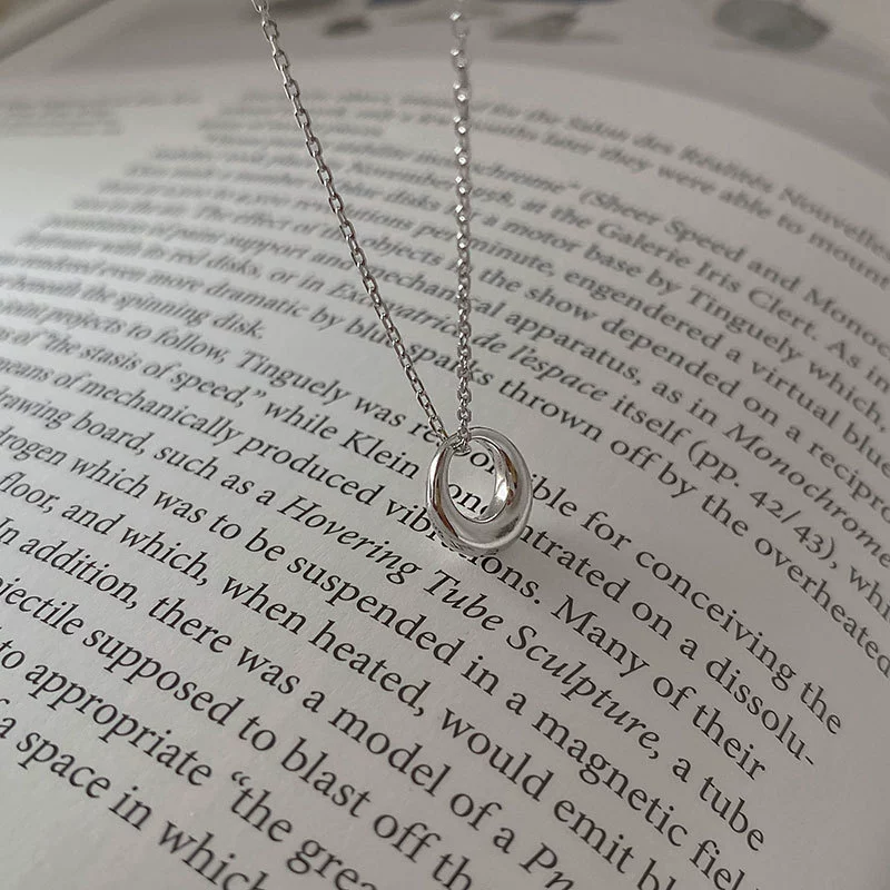 قلادة فضية بقلادة على شكل دائرة هندسية كورية نسائية من Ins