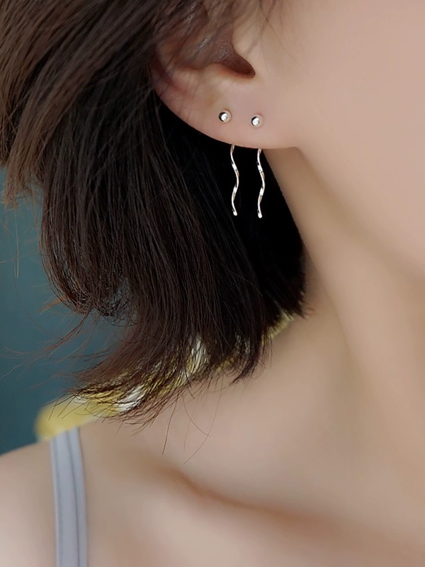 سلك الأذن الفضي ذو الخرز الدائري الكوري الفاخر من Xiao Z