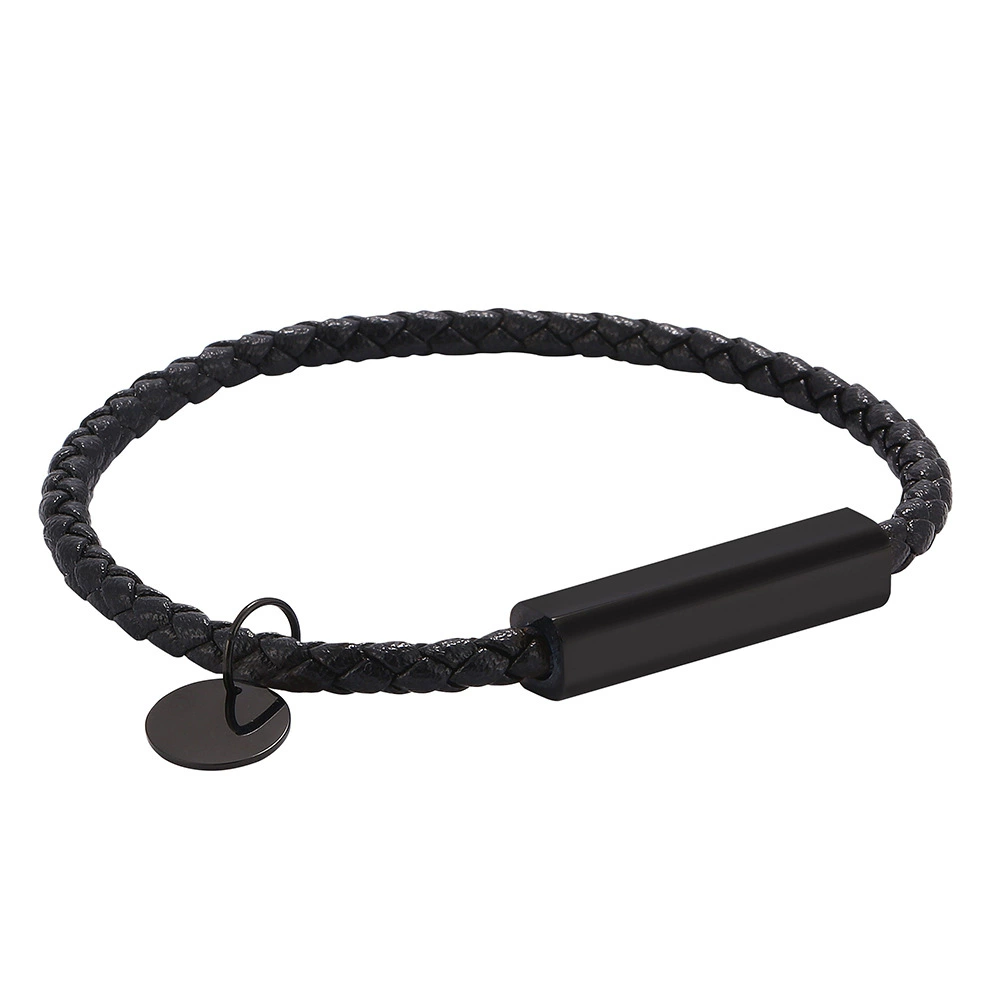سوار جلدي عصري وبسيط بحلقة واحدة من الفولاذ والتيتانيوم بإبزيم مغناطيسي للأزواج سوار حروف إبداعي أوروبي وأمريكي مجوهرات يدوية شخصية