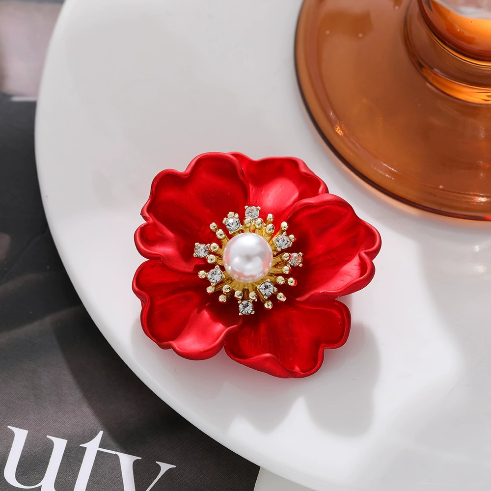 بروش زهرة حمراء للعام الجديد للنساء مع إكسسوارات بدلة شيونغسام ذات تصميم عصري وإكسسوارات على الطراز الصيني وردة الكاميليا