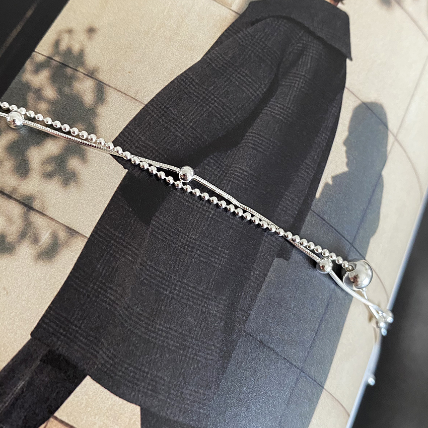 قلادة من الفضة الإسترليني اليابانية والكورية البسيطة على شكل عظمة الثعبان للفتيات خرز دائري صغير