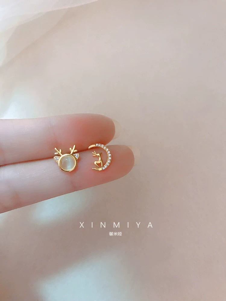 أقراط لطيفة على شكل قمر الأيائل للنساء S925 من الفضة الإسترليني على شكل إبرة أقراط صغيرة 2024 أقراط عصرية جديدة