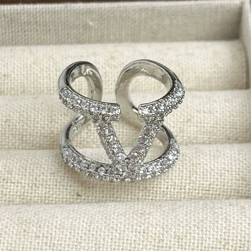 واتاكاوا-تشان 925 من الفضة الاسترليني الخفيفة الفاخرة الرائعة المصنوعة من الزركونيا الدقيقة والماس متجمد القوس المفتوح حلقة السبابة النسائية الإضافية