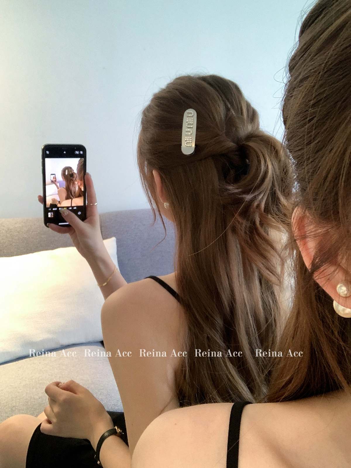 Y2K مشبك شعر بكلمة واحدة مشبك جانبي للنساء مشبك شعر مكسور الجبين مشبك نسائي منقار البط تصميم المشاهير على الإنترنت