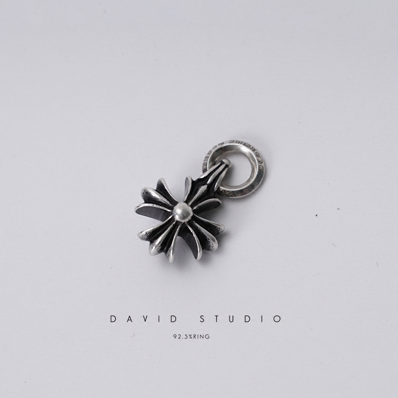 قلادة فضية متقاطعة على شكل زهرة دراجة نارية عصرية للجنسين