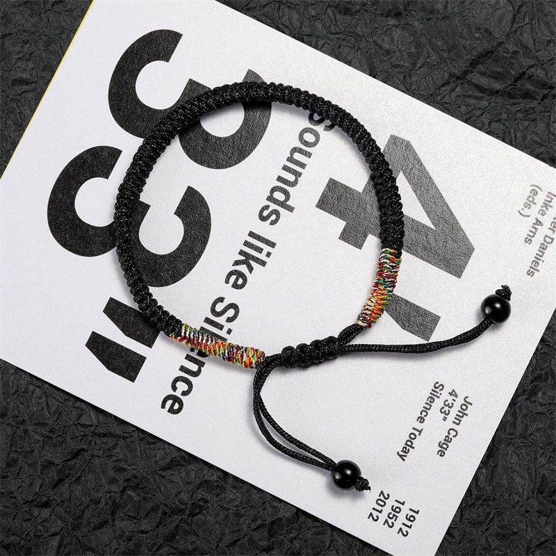 حبل أحمر على الطراز العرقي عقدة ماسية مصنوعة يدويًا باللون الأسود