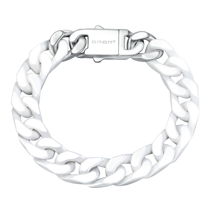 GRGR سوار سلسلة كوبي من السيراميك الأبيض المقسم للرجال، هيب هوب، شخصية أوروبية وأمريكية، اتجاهات كوبية، نفس النمط للنساء