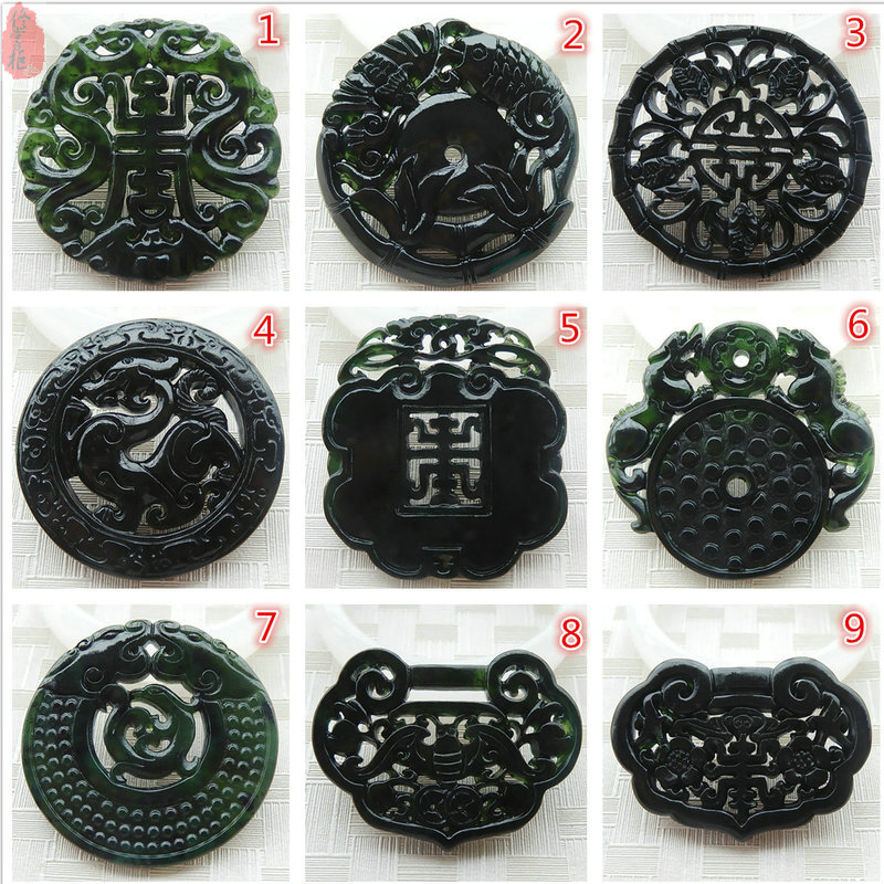 المعلقات المجوفة من اليشم الأخضر الداكن على الوجهين طبيعية