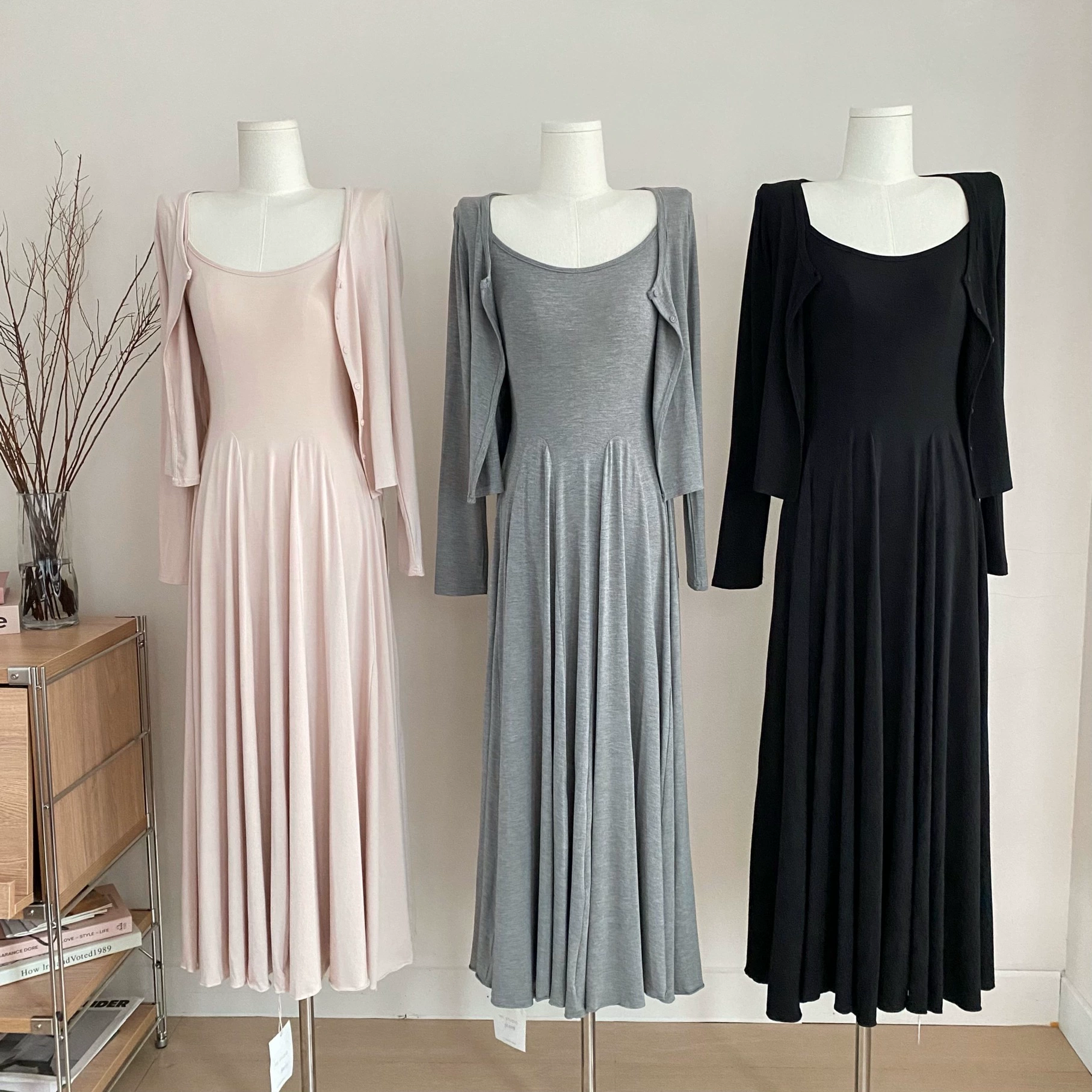 فستان Suspender لطيف ذو ثنيات وقصة ضيقة