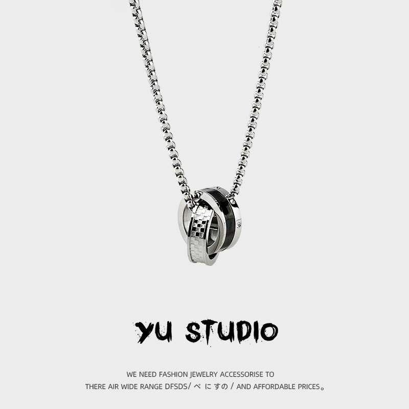 YUSTUDIO الأوروبية والأمريكية الهيب هوب بسيطة مزدوجة حلقة مشبك العصرية التيتانيوم الصلب قلادة الرجال شخصية خفيفة فاخرة قلادة سترة سلسلة