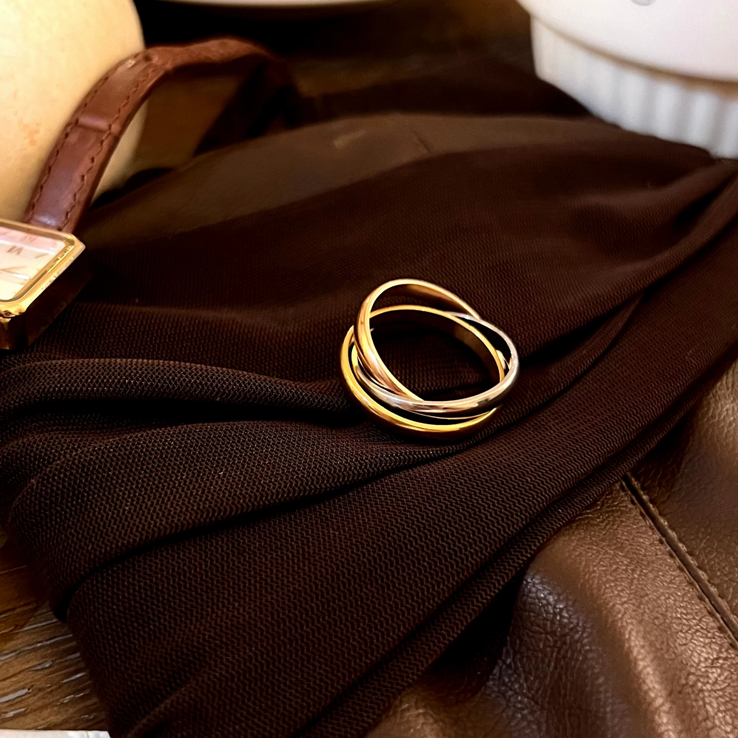 خاتم تانغ ينغ للسيدات من الفولاذ التيتانيوم ذو دائرة ثلاثية الألوان