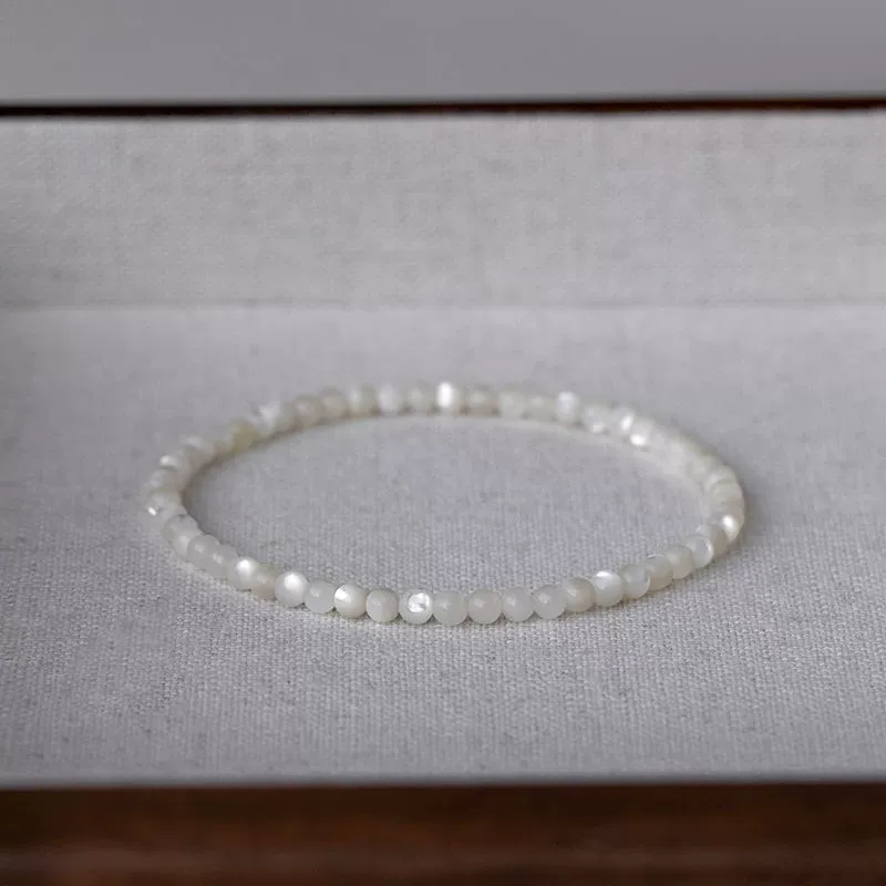 “White Dew” سوار على شكل صدفة بيضاء طبيعية حبل مرن مصنوع يدويًا لا يتلاشى للنساء على شكل فراشة بيضاء صدفة حظ سعيد