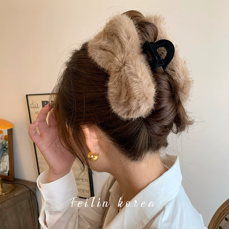 القوس القطيفة المنتزع حجم كبير صيف 2024 جديد فروي دبوس الشعر الإناث مشبك للرأس الخلفي أغطية الرأس مشبك القرش