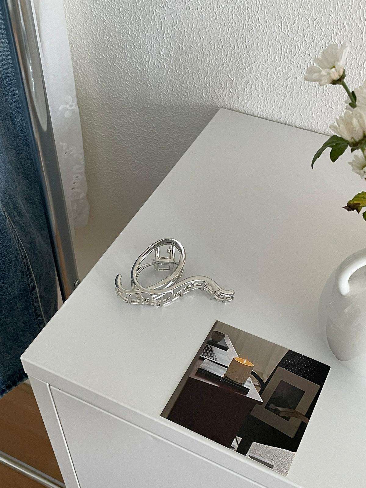 إبرة فضية شخصية مجوفة غير متناظرة على الطراز الكوري S925