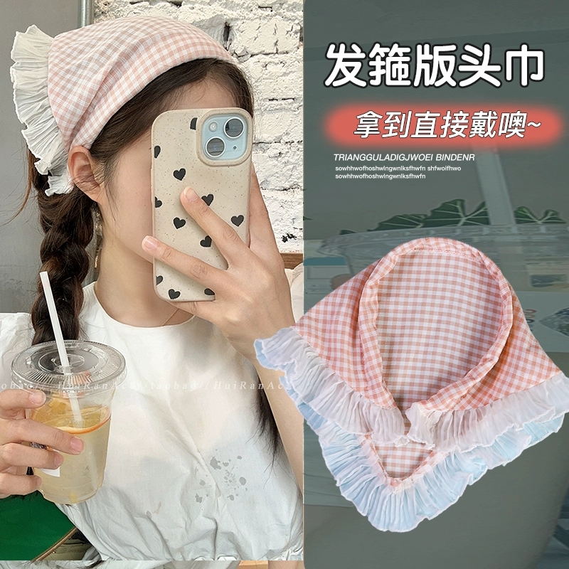عصابة رأس من الدانتيل الأبيض، وشاح على الطراز الرعوي الفرنسي قطعة واحدة، وشاح مثلث بنفس النمط، وشاح مربع لإكسسوارات الشعر النسائية