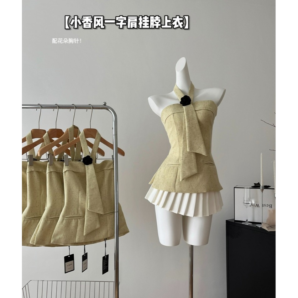 قميص قصير برقبة رسن بتصميم عبق صغير محلي الصنع من Taozi لملابس خارجية للنساء 2024 جديد نقي الرغبة هوتي مثير صديرية دائرية
