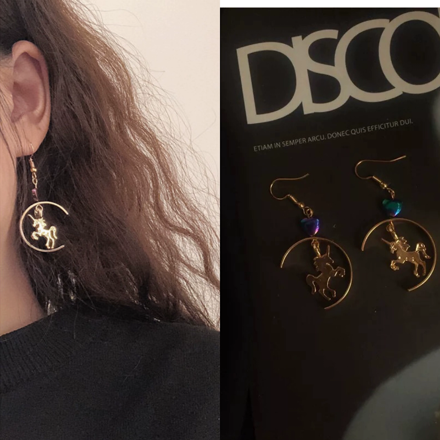 أقراط نسائية على شكل قلب هاراجوكو الأوروبي والأمريكي يونيكورن داكنة