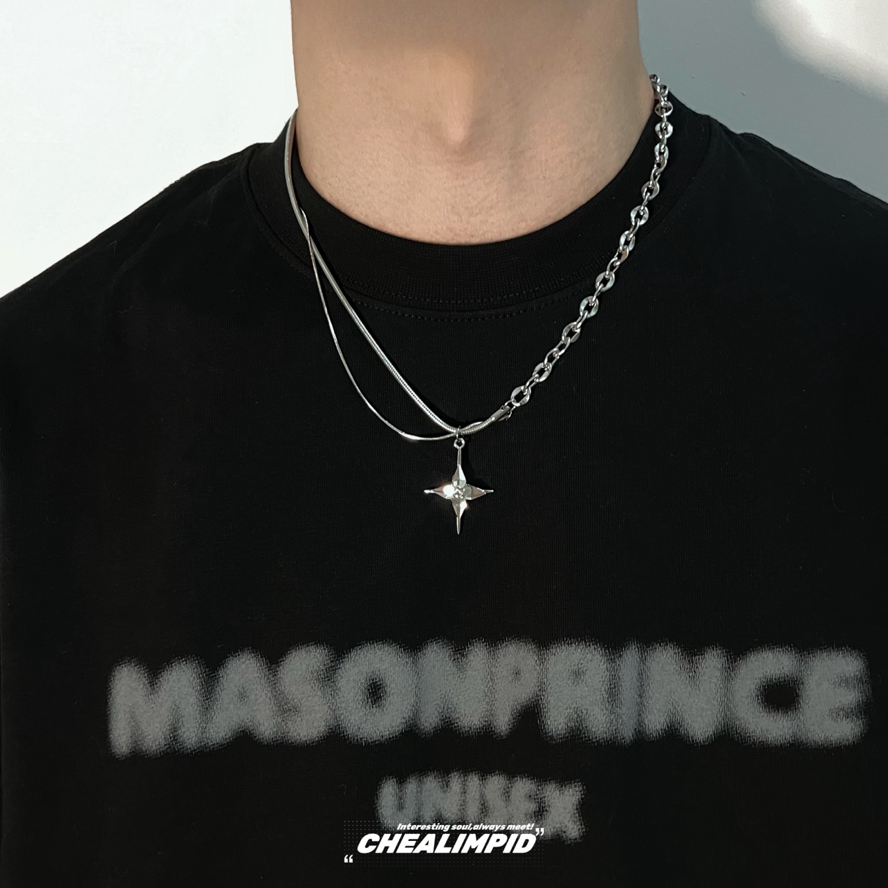 تشياليمبيد/. قلادة من الماس بطبقة مزدوجة من Cross Star بتصميم متخصص، اتجاه الشارع الراقي متعدد الاستخدامات للرجال والنساء