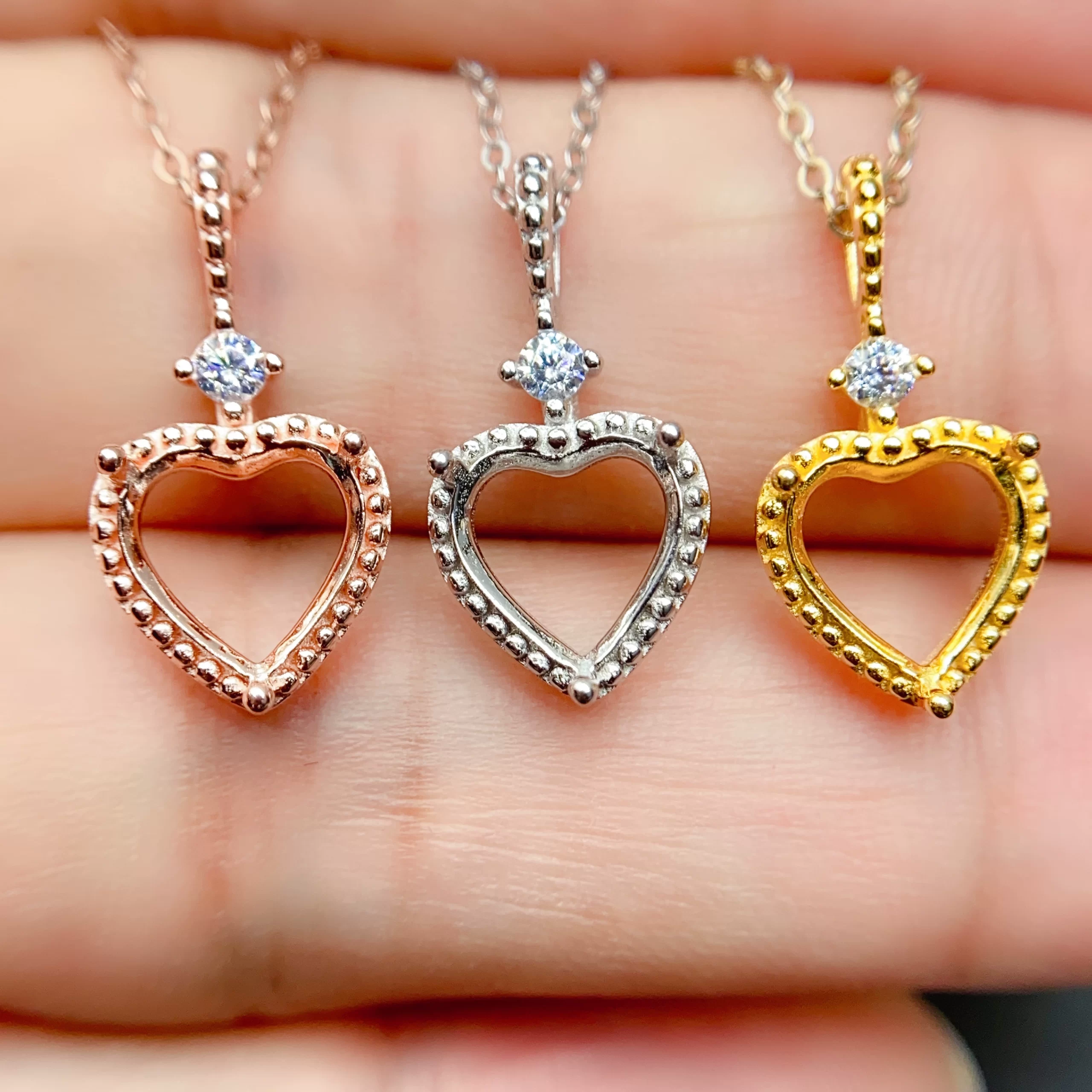 قلادة من الفضة النقية تدعم تصميم دانتيل أنيق ياباني وكوري بسيط على شكل قلب 6/7/8 مم لون كنز كريستال إكسسوارات ذاتية الصنع