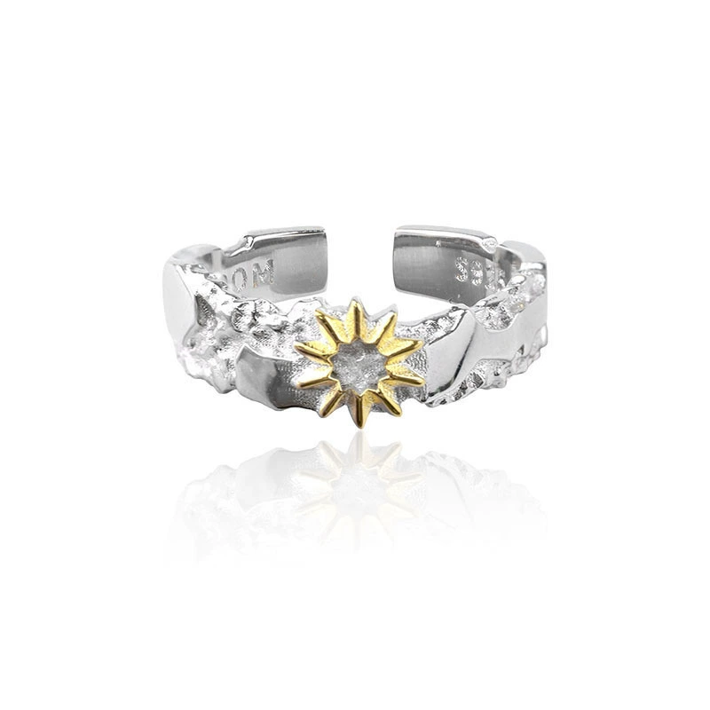 زوج من الخواتم الجميلة والباردة للشمس والقمر للرجال والنساء للأزواج، مزاج شخصي عصري S925، حلقة مفتوحة من الفضة، خاتم إصبع السبابة، الاتجاه