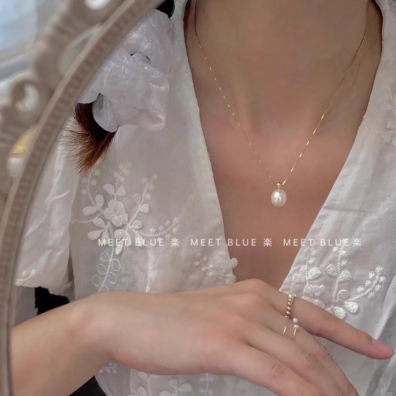 S925 فضة اللؤلؤ قلادة المرأة قطرة الماء Passepartout واحدة
