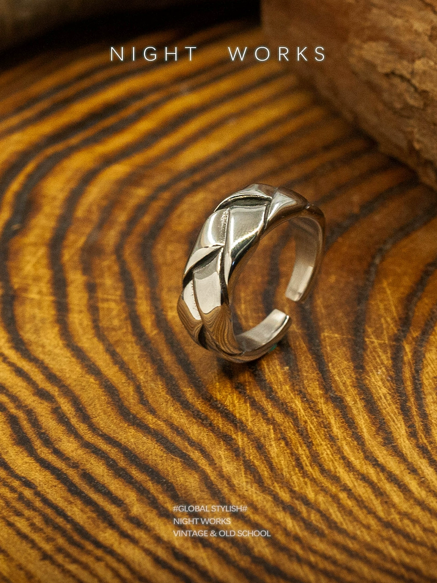 NIGHT WORKS حلقة مفتوحة كبيرة الحجم للرجال مضفرة