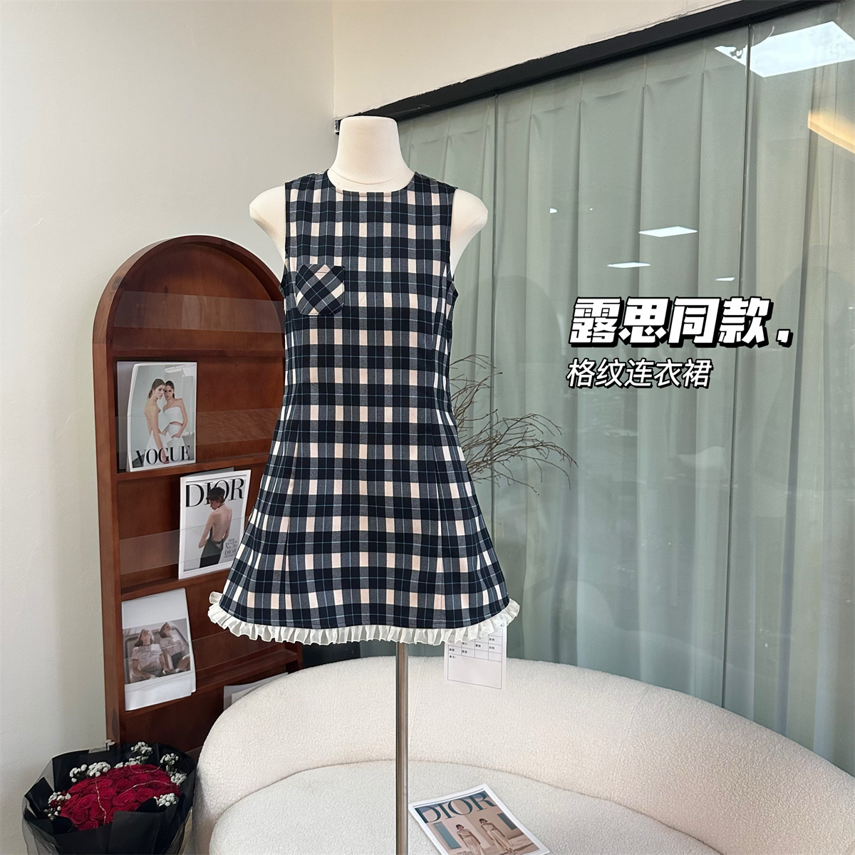 فستان نسائي صيفي منقوش بالأبيض والأسود من الدانتيل