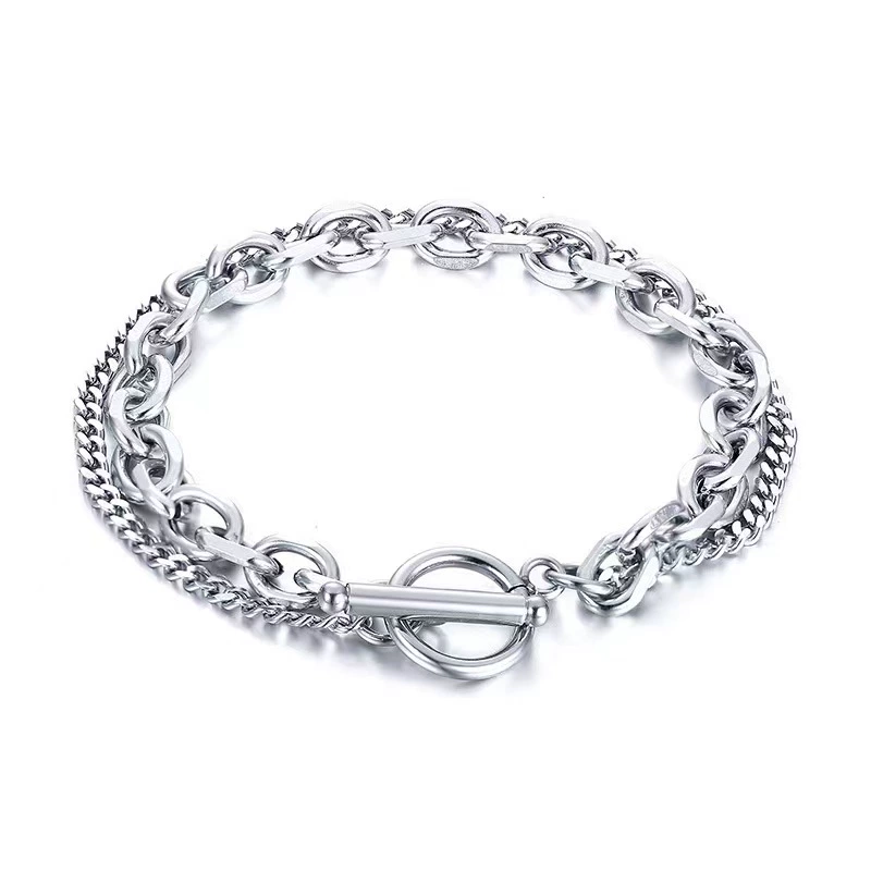 سوار مزدوج من الفولاذ الكوبي من التيتانيوم هيب هوب بطبقة مزدوجة