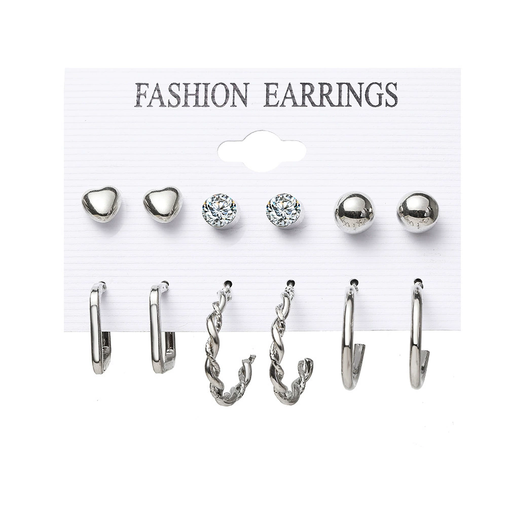 طقم أقراط لؤلؤ فضية مكونة من 6 أزواج للنساء مجموعة أقراط لؤلؤ فضية مكونة من 6 أزواج