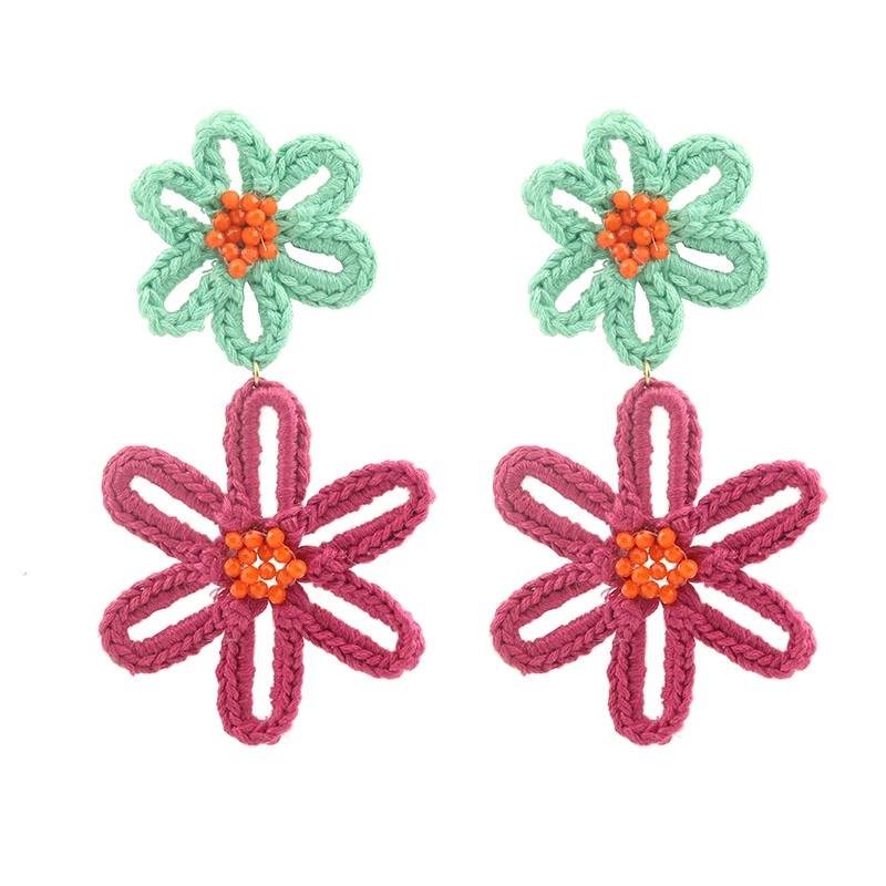 أقراط منسوجة يدويًا على شكل زهور على طراز الشارع