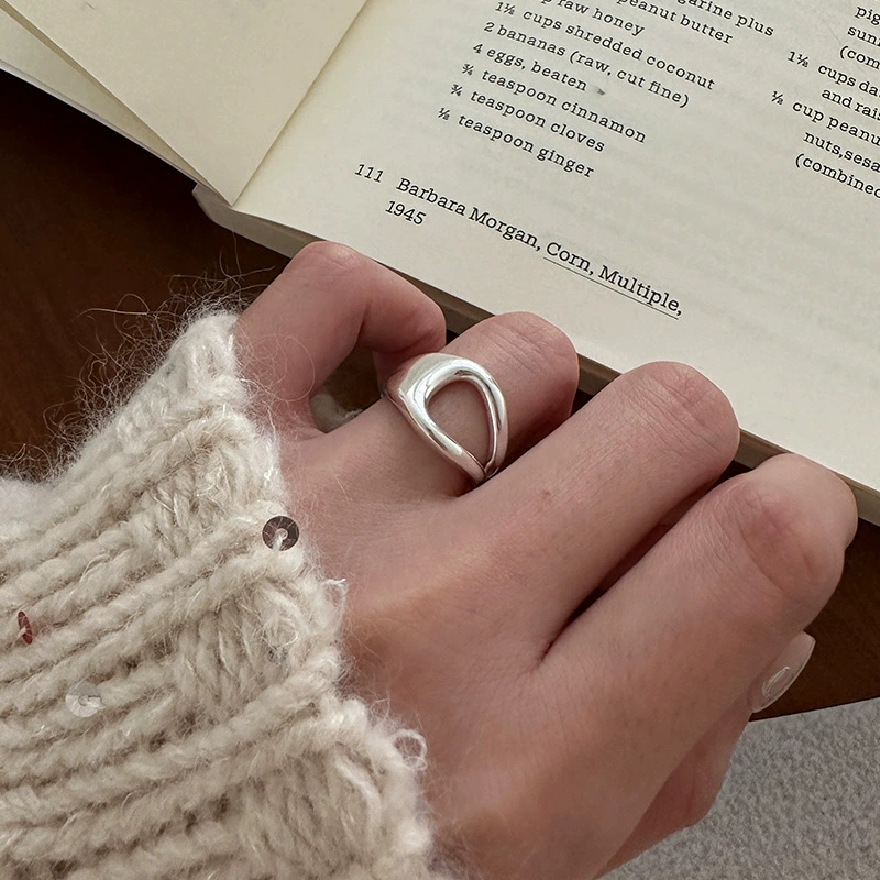 خاتم الحب الزركون الملون للنساء، مزاج عصري، موديل ساخن لمشاهير الإنترنت S925 خاتم فضة مفتوح بإصبع السبابة عصري
