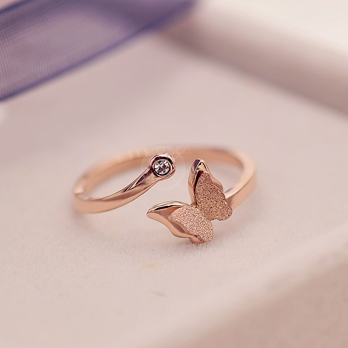 خاتم مفتوح بلوري مخصص للنساء من الذهب الوردي عيار 18 قيراط