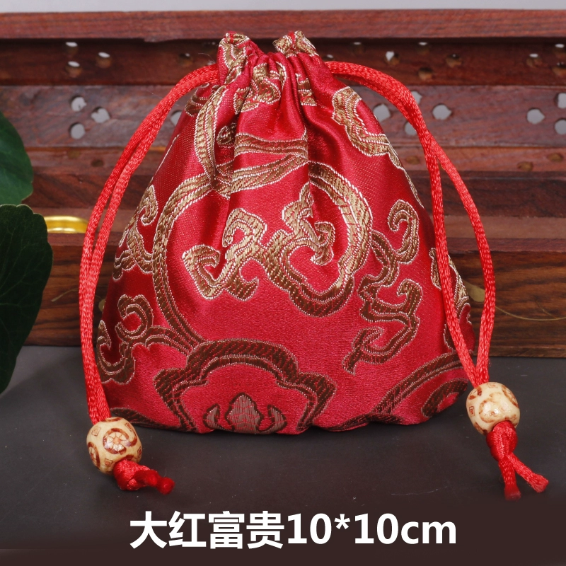 حقيبة مجوهرات برباط أحمر مطرز عتيق