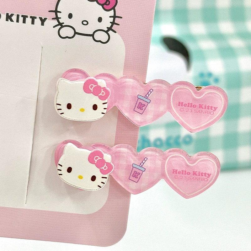 زوج من دبابيس الشعر على شكل زر الحب من سانريو، باشا دوج هالو كيتي، قابلة للتدوير، على الطراز الشعبي الجديد، إكسسوارات الشعر