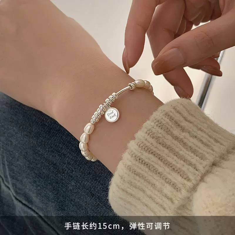 سوار اللؤلؤ الحلو للنساء على الطراز الكوري قلادة دائرية بحروف شخصية S925 سوار فضي مجوهرات يدوية متخصصة