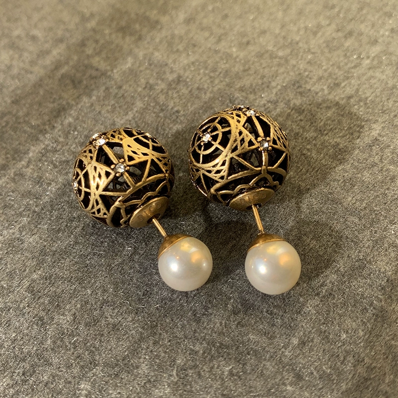 أقراط نسائية مجوفة مستديرة الشكل على الوجهين مصنوعة من اللؤلؤ المتعثر