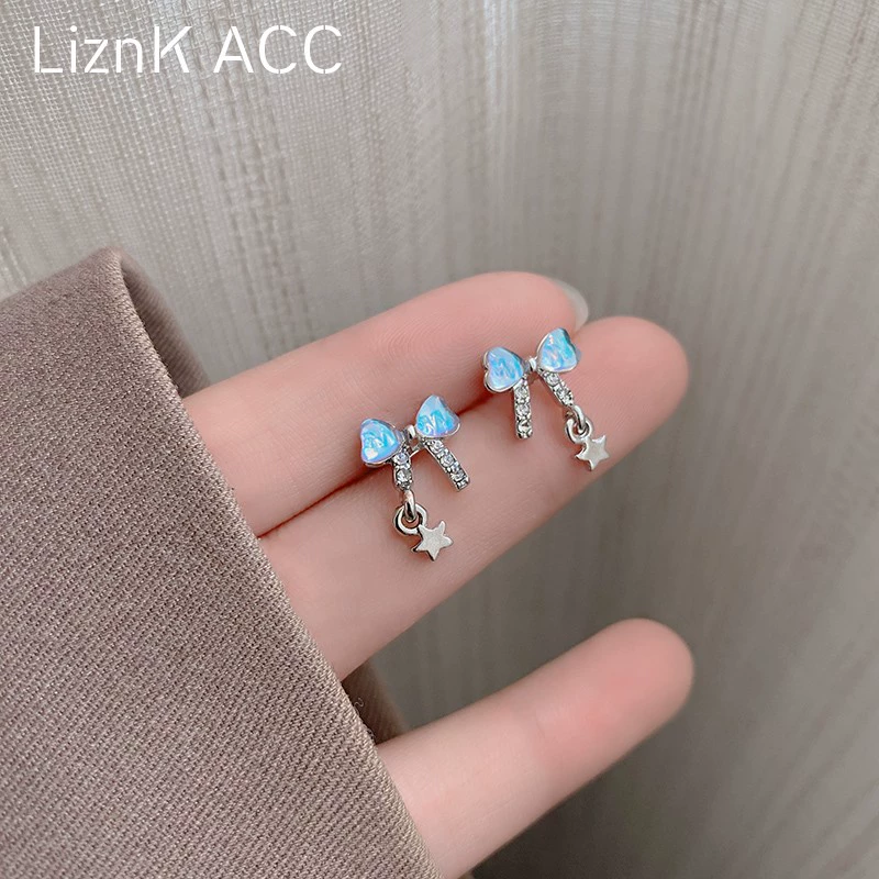 أقراط على شكل فيونكة كريستال زرقاء صغيرة ورائعة 2023 أقراط بتصميم عصري جديد للنساء
