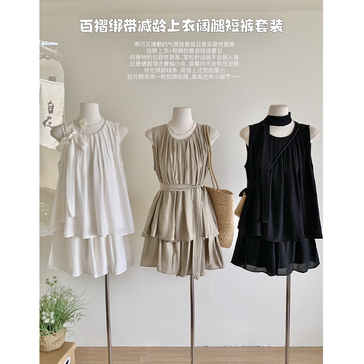 سترة صيفية بطيات لعام 2024 سترة خصر منتفخة + خصر مرن تنانير نسائية غير رسمية بدلة للتنقل