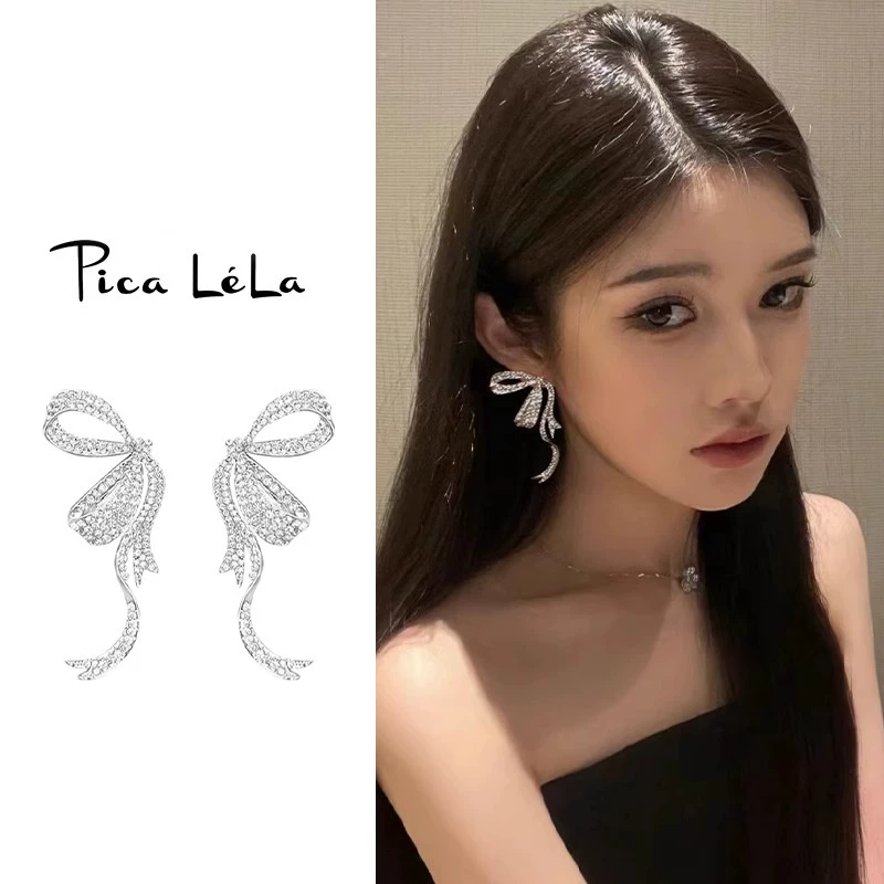الشريط القوس جديد مبالغ فيه أقراط المرأة الراقية فستان فضة أقراط مزاجه شرابة أقراط أقراط كبيرة