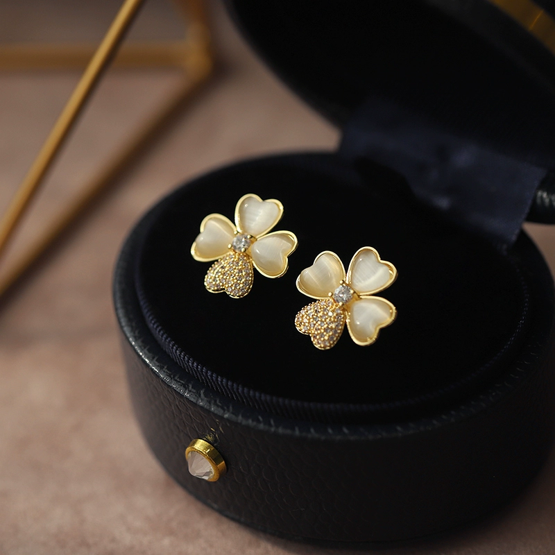 البرسيم ذو الأربع أوراق المليئة بالماس بتصميم عين القطة للنساء ذوات الوجوه المستديرة