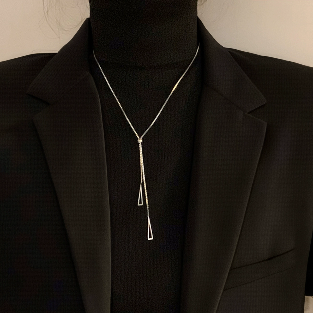 قلادة مثلثة بسيطة للنساء، سلسلة سترة عصرية للخريف والشتاء، شرابة، سحاب طويل، إكسسوارات فاخرة خفيفة من الفولاذ التيتانيوم، تصميم متخصص