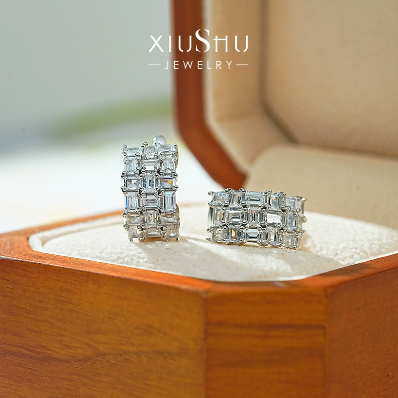 أقراط الماس الأبيض الفاخرة الخفيفة 925 قطع الزمرد الفضية المرصعة بالألماس عالي الكربون أقراط متخصصة متعددة الاستخدامات للنساء بسيطة