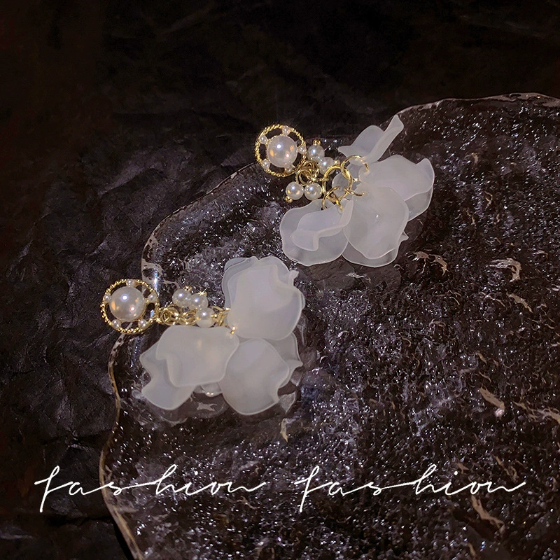 أقراط زهرة فضية S925 للنساء أقراط كورية على شكل زهرة للمشاهير على الإنترنت أقراط لؤلؤية بسيطة ومتعددة الاستخدامات