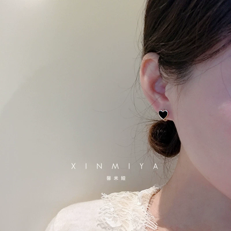 أقراط نسائية على شكل قلب خوخي أسود على الطراز البارد